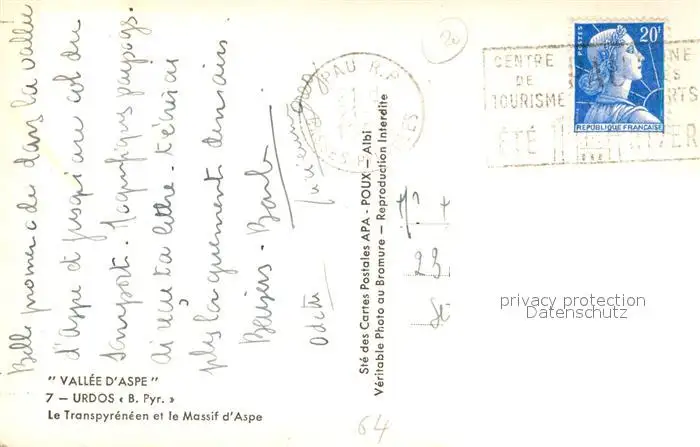 Urdos Vall?e d`Aspe Urdos postalisch gelaufen 1958 Erhaltung siehe scans [LiesaD40] LiesID40