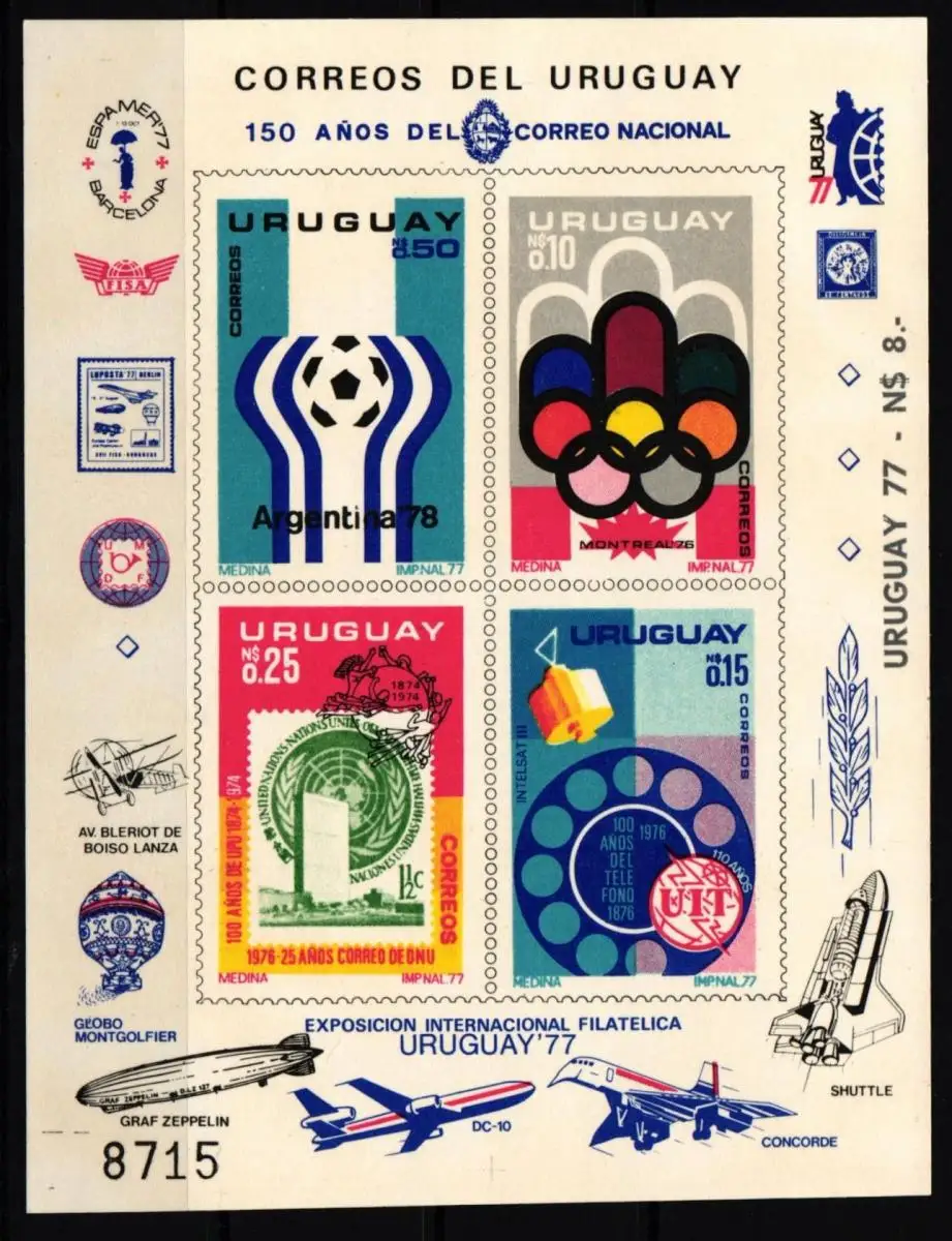 Uruguay 1402-1405 postfrisch als Sonderblatt UREXPO 77 #JY095
