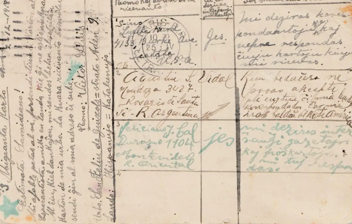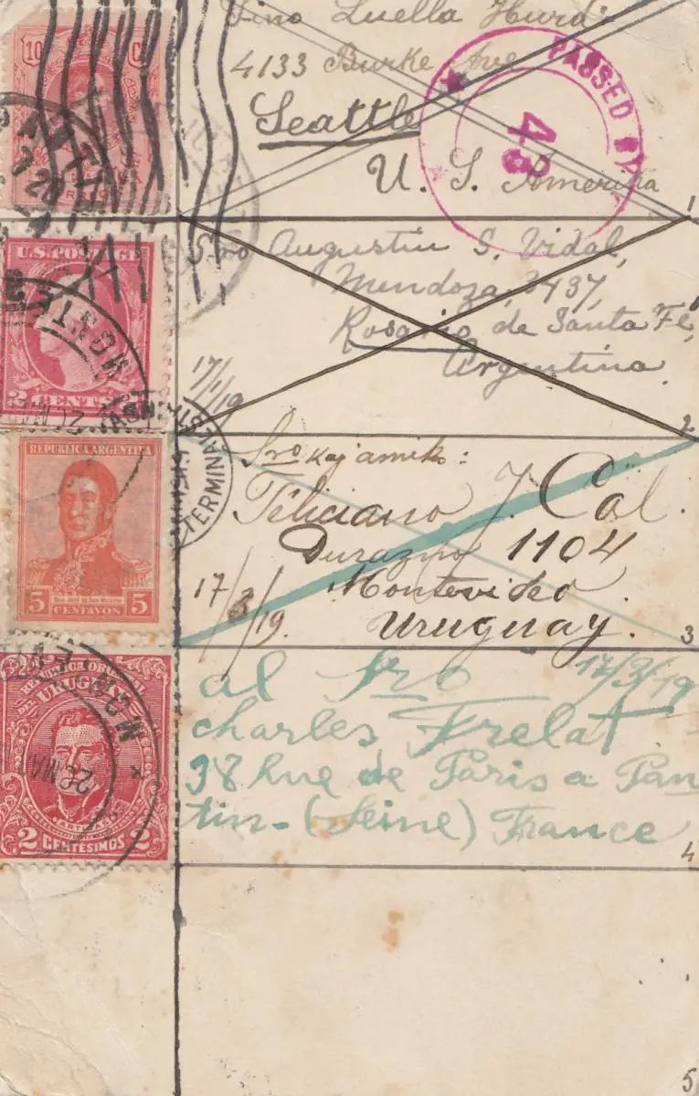 Uruguay 1919: post card Paris, Argentina, Montevideo, Seattle