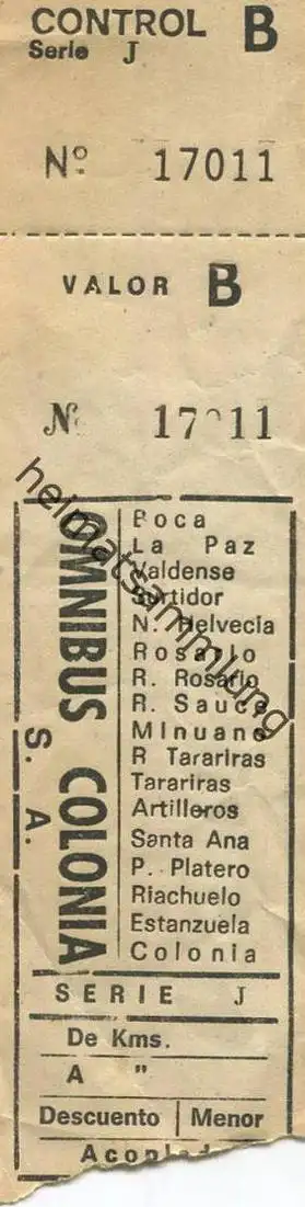 Uruguay - Omnibus Colonia S.A. - Busfahrschein