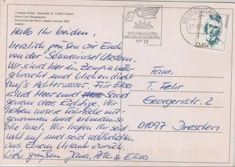 Ich hatte die Rechnung sofort als Vorkasse bezahlt, aber keine Zusendung der Karte erhalten. Trotz Nachfrage keine Rückmeldung bzw. Erklärung. Da es sich zum Glück nur um 1,70 € handelt, ist die Sache für mich erledigt, ärgerlich, aber zu verkraften. Mit den drei anderen Karten, die ich bestellt hatte, hat alles wunderbar geklappt.