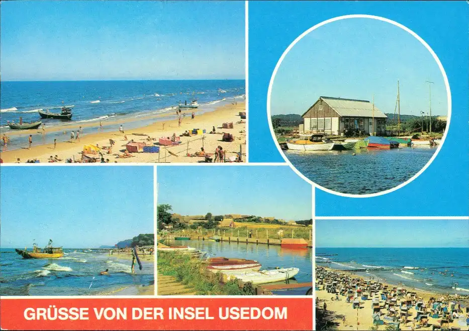 Usedom Ückeritz: Strand, Bootshafen am Achterwasser Strand Koserow Strand 1980