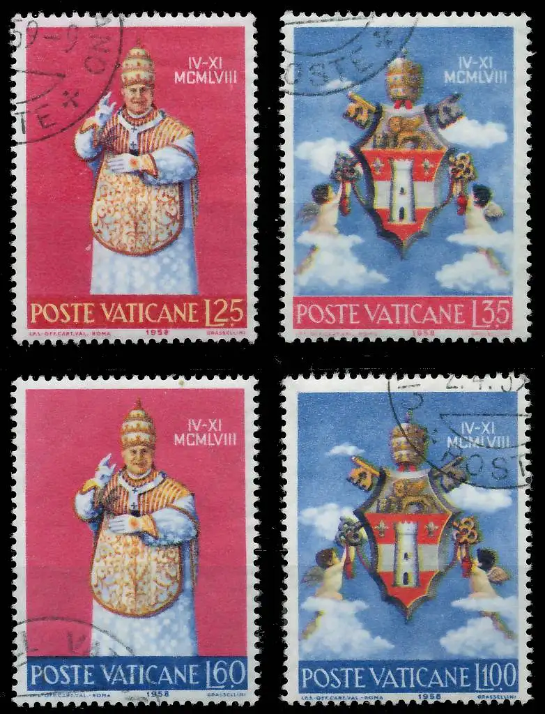 Krönung von Papst Johannes XXIII., Stempelabschlag in einer Ecke aus 4er-Block Stempelung