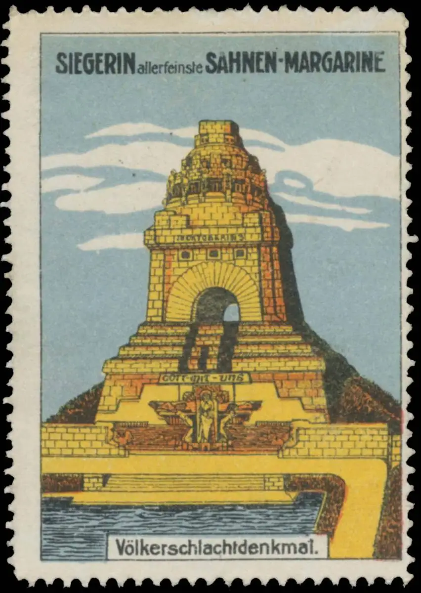 Siegerin allerfeinste Sahnen-Margarine Nr. 10, Befreiungskriege, Leipzig, Variante 3, Größe/Zustand: 6x4 , guter Zustand, Original alte Reklamemarke die seinerzeit für die Werbung benutzt wurde