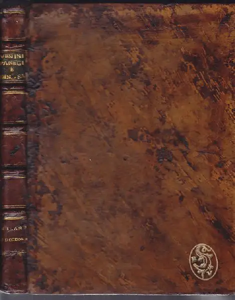 Milano, Marelli 1782. 4°. 1 Bl., XII S., 1 Bl., 252 S. Mit Vign. u. Initialen. Ldr. d. Zt. m. Rückensch. Rückenkanten berieb.