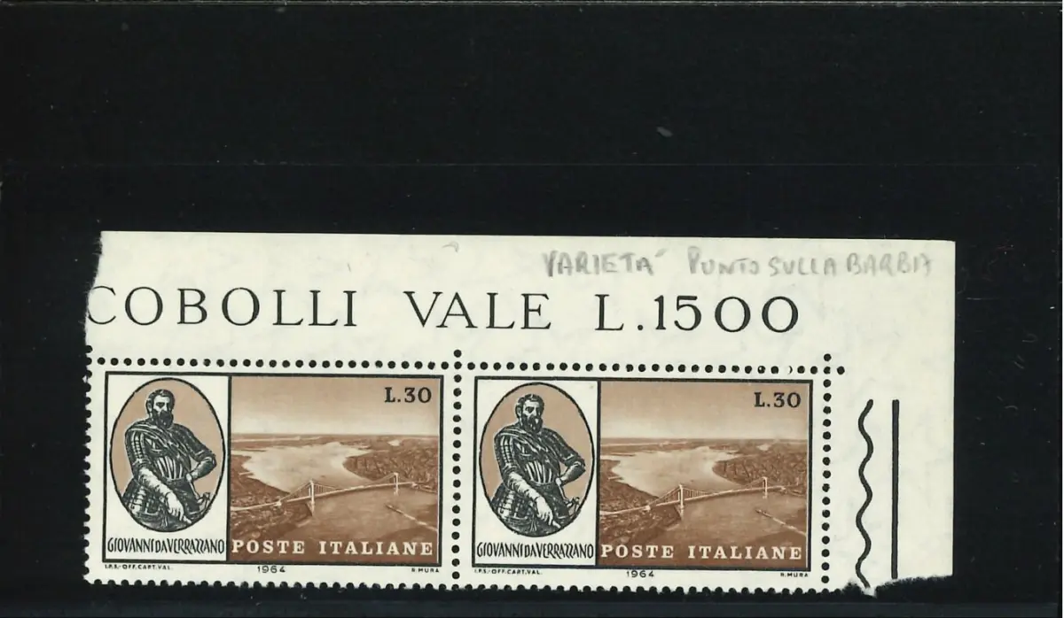 MNH - Vollgummi - VERAZZANO 30 L. PAARE MIT EINEM PUNKT AUF DEM BART POS 5 - Cod. ITAV_1197
