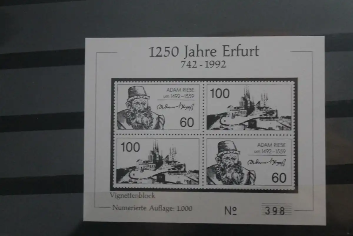VIGNETTE; Vignettenblock 1250 Jahre Erfurt 1992, nummeriert