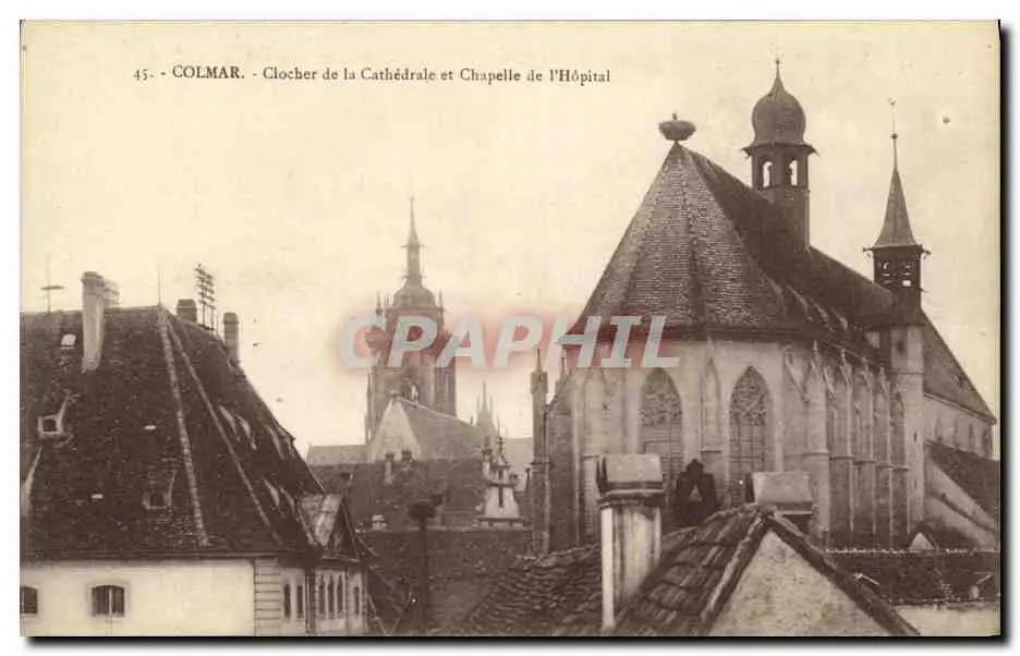 VINTAGE POSTCARD Colmar Bell tower of the Cathedral and Vault of L Hospital
