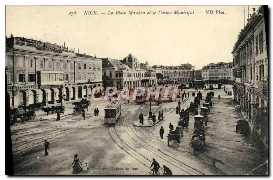 VINTAGE POSTCARD Nice the Massena Place and the Municipal Casino Tram