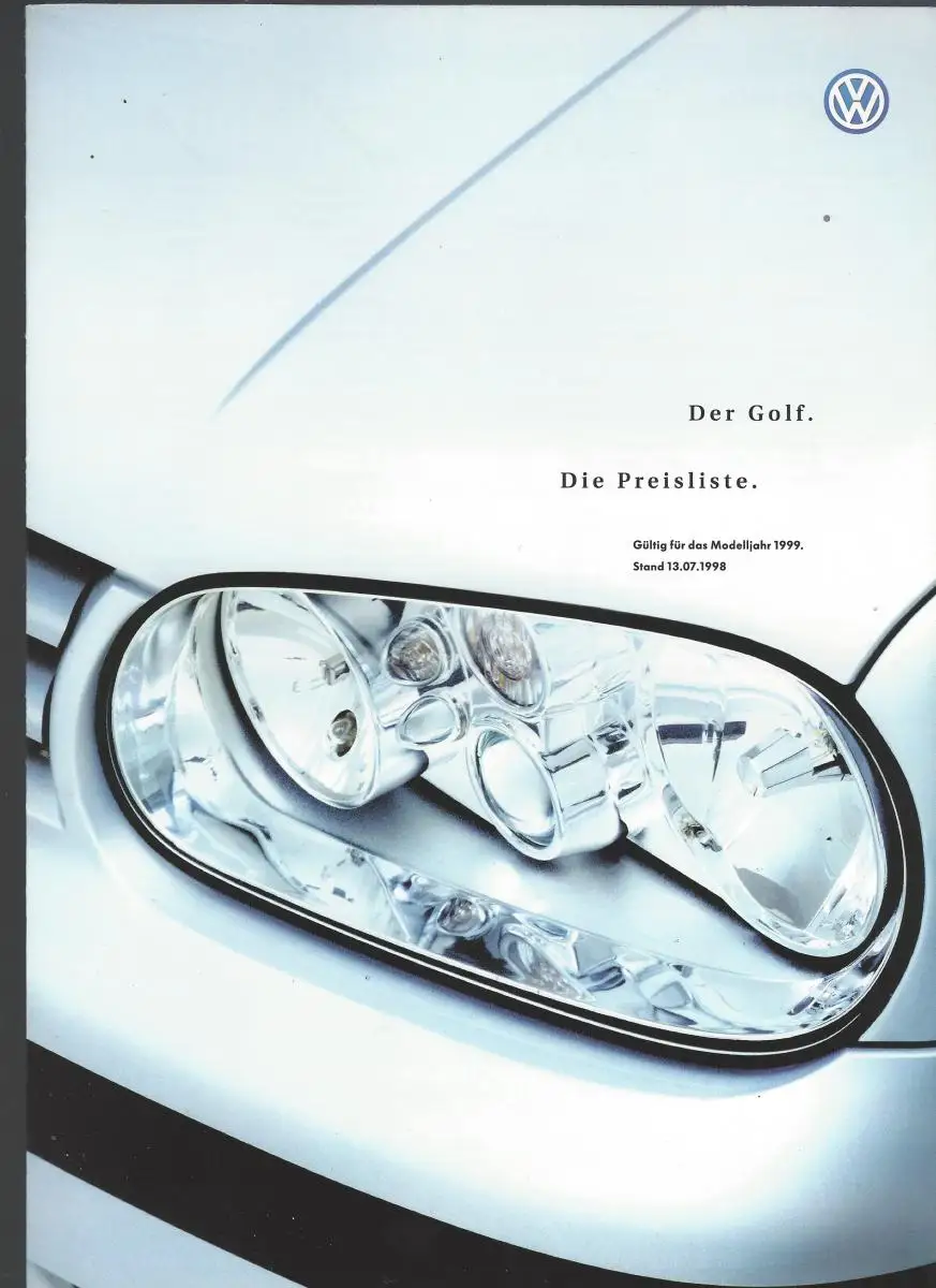 VW. Der Golf mit Beilage Technischen Daten und Ausstattungen und Preisliste. 10/1998. Prospekt.