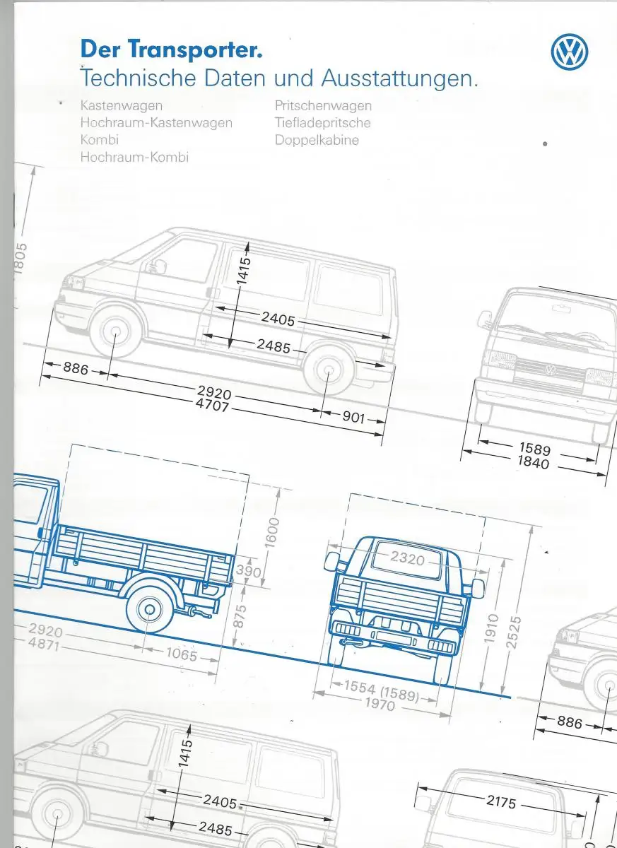 Titel: VW. Der Transporter mit Beilage Technische Daten und Ausstattung. 2/1996. Prospekt.