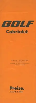 VW Golf 1 Cabriolet Preisliste 3.1980