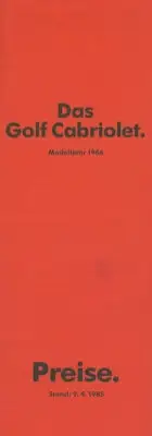VW Golf 1 Cabriolet Preisliste 4.1985