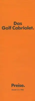 VW Golf 1 Cabriolet Preisliste 8.1982