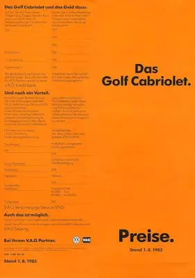 VW Golf 1 Cabriolet Preisliste 8.1983