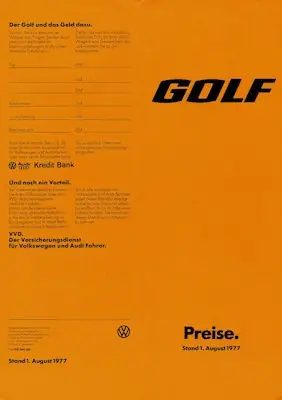 VW Golf 1 Preisliste 8.1977