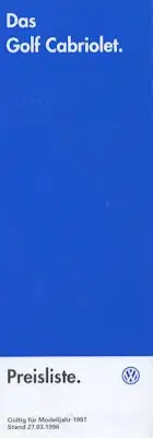 VW Golf 3 Cabriolet Preisliste 3.1996 für 1997