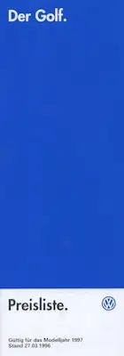 VW Golf 3 Preisliste 3.1996 für 1997