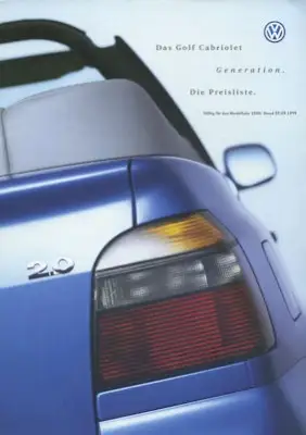 VW Golf 4 Cabriolet Preisliste 9.1999