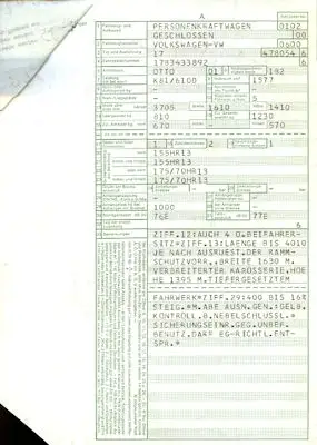VW Golf Typ 17 Original Fahrzeugbrief 1978