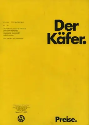 VW Käfer Preisliste 8.1971