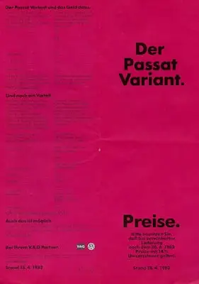VW Passat B 2 Variant Preisliste 4.1983