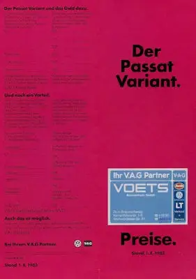 VW Passat B 2 Variant Preisliste 8.1983