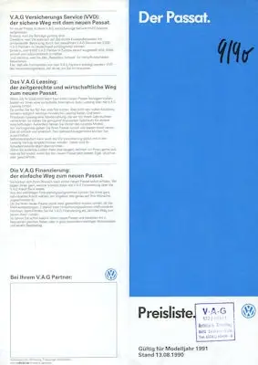 VW Passat B 3 Preisliste 8.1990