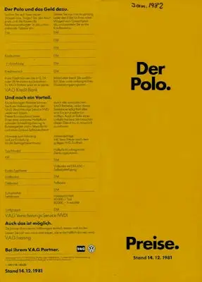 VW Polo 2 Preisliste 12.1981