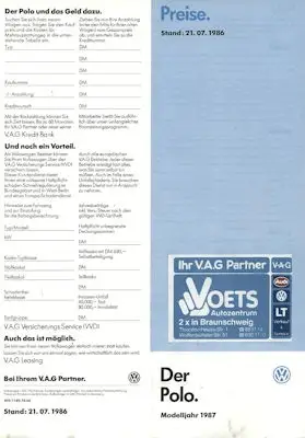 VW Polo 2 Preisliste 7.1986