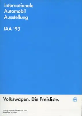 VW Preisliste 9.1993