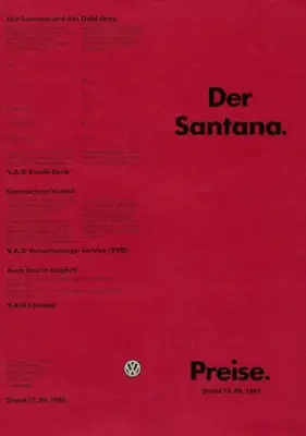 VW Santana Preisliste 9.1981