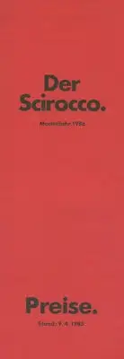 VW Scirocco 2 Preisliste 4.1985 für 1986