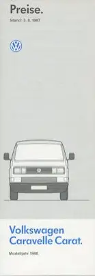 VW T 3 Caravelle Carat Preisliste 8.1987