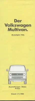 VW T 3 Multivan Preisliste 9.1985