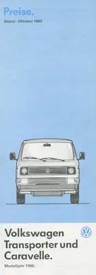 VW T 3 Transporter und Caravelle Preisliste 10.1989