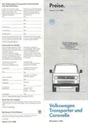VW T 3 Transporter und Caravelle Preisliste 4.1988