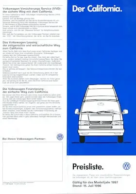 VW T 4 California Preisliste 7.1996