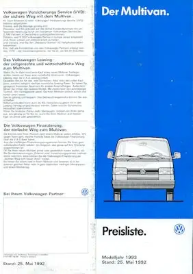 VW T 4 Multivan Preisliste 5.1992 für 1993