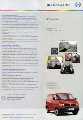 VW T 4 Transporter Preisliste 5.2000 für 2001