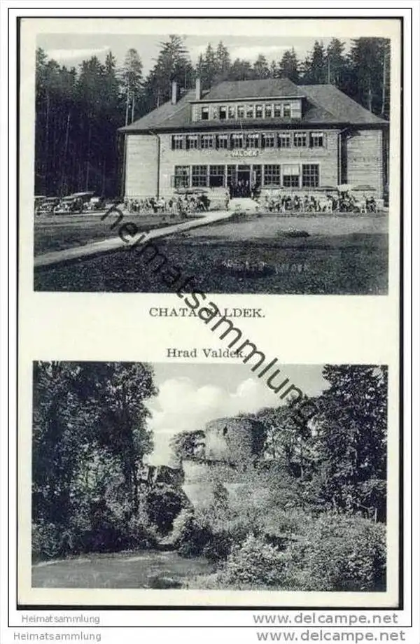 Valdek - Waldek - Chata - Hrad Valdek - Nakl. J. Kvech Komarov - Briefmarke entfernt (E3856) gel.