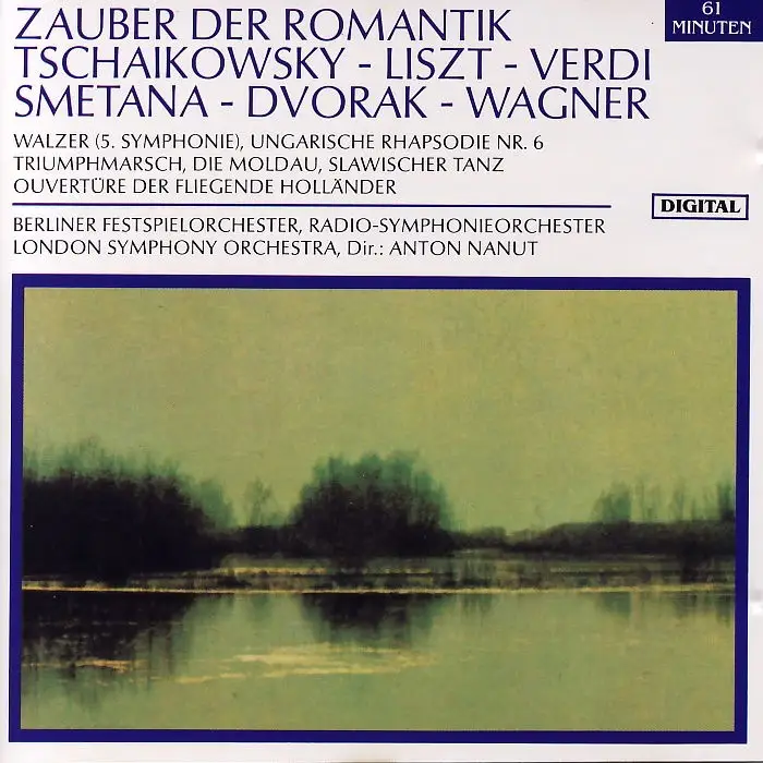 CD Album Various - Zauber Der Romantik, Zustand CD M- Hülle VG+; Made in Germany 1987 Sonia Classic 74412, Tracks Pjotr Iljitsch Tschaikowski - Walzer 5. Symphinie E-Moll Op.64 5:56, Bedrich Smetana - Die Moldau 12:54, Franz Liszt - Ungarische Rhapsodie Nr.6 Des-Dur 13:55, Giuseppe Verdi - Triumphmarsch Aus "Aida" 6:08, Antonín Dvorák - Slawischer Tanz Op.46 Nr.2 E-Moll 5:31, Richard Wagner - Der Fliegende Holländer Ouvertüre 10:32, Felix Mendelssohn Bartholdy - Saltarello Italienische Symphonie Nr.4 A-Dur Op.90 6:11