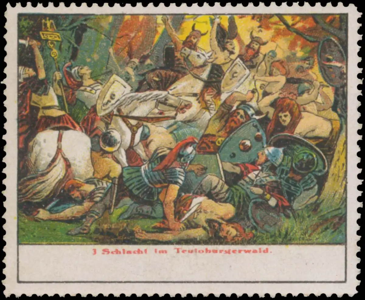 Schlacht im Teutoburger Wald. 3, Militär, Größe/Zustand: 4x6 , guter Zustand, Original alte Reklamemarke die seinerzeit für die Werbung benutzt wurde