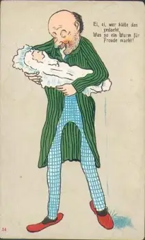 Vater mit Baby Humorkarte * ca. 1900