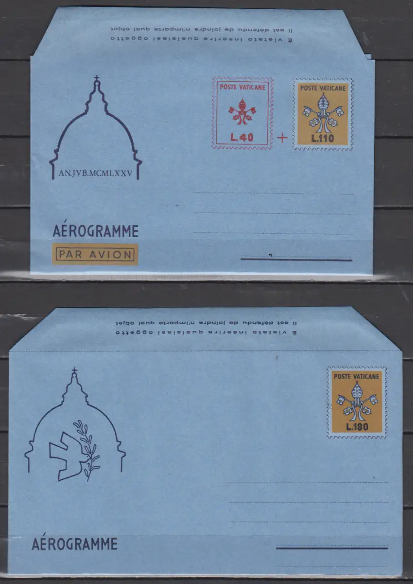 Vatikan Papstwappen 2 Aerogramme ungebraucht L 40 + L 110 und L 180