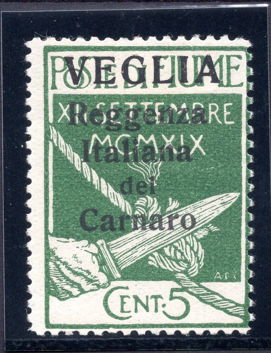 MH - Mit Linguella - - Veglia - Regenza Italiana del Carnaro aufgedruckt VEGLIA in großer Cent-Schrift. 5 Nr.1 sehr gutes Exemplar mit Spur von Linguella - signiert Emoroso - Kat. euro 650 Cod.983/182