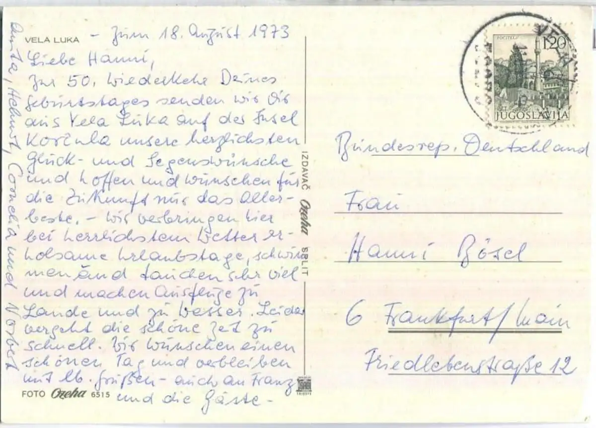 Vela Luka - kleiner Eckknick unten links (E95739) gel. 1973