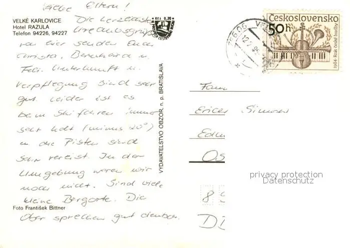 Velke_Karlovice Hotel Razula Velke Karlovice postalisch gelaufen 1995 Erhaltung siehe scans [WerneD78] WernPID7