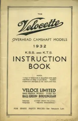 Velocette K.S.S. + K.T.S. Bedienungsanleitung 1932
