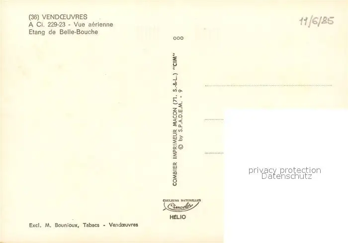 Vendoeuvres Vue aerienne Etang de Belle Bouche Vendoeuvres postalisch nicht gelaufen nach 1965 Erhaltung siehe scans [WerneD78] WernPID7
